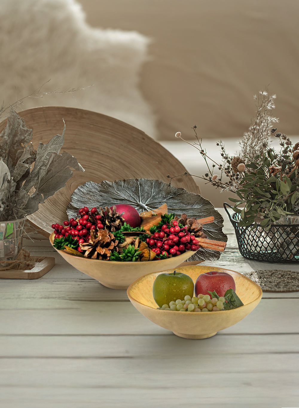 Featuring a warm blend of beige and golden tones, this bowl captures the essence of nature. It's soft gradient and calming colors seamlessly complement a variety of interior styles.