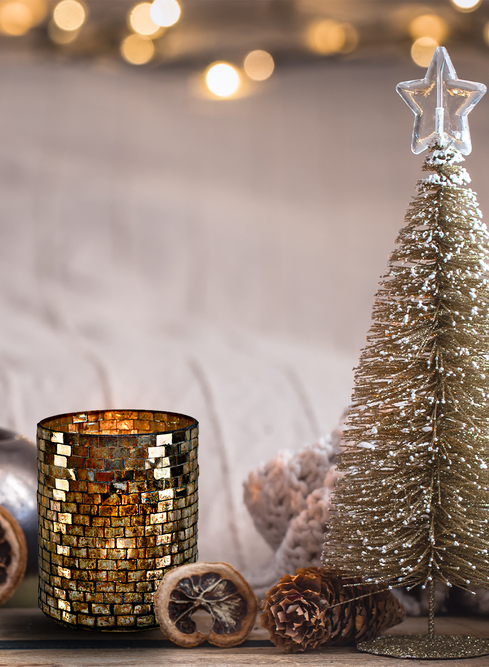 Vintage Mosaic Glass Candleholder in 2 Sizes